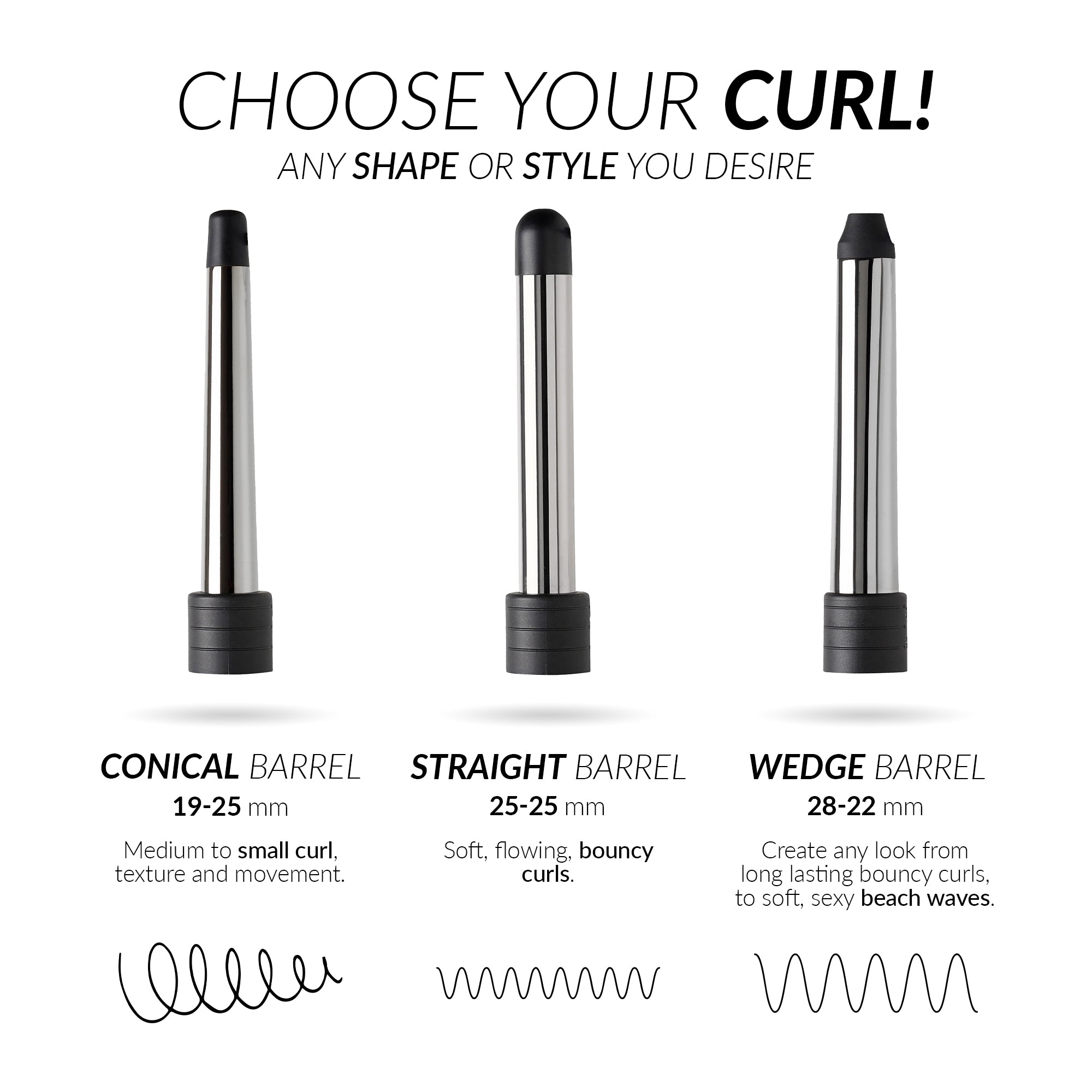 Curling Irons: Achieve perfect curls and waves with our advanced curling irons, featuring adjustable heat settings and ceramic technology for smooth, frizz-free results.